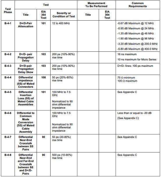 通用串行接口USB 3.0 线缆高速电气性能测试,包括时域测试(阻抗、传播延时、传播延时偏移)和频域测试(信号衰减、插损、串扰):