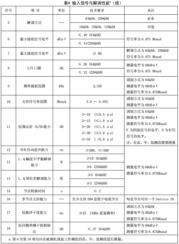 针对中国有线数字电视机顶盒的测试标准,包括输入信号与解调性能测试和邻频道数字电视/模拟电视干扰测试。