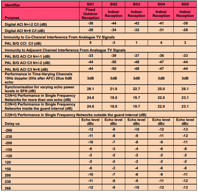 新加坡资讯通信媒体发展管理局IMDA(Info-communications Media Development Authority)针对进入新加坡市场的DVB-T2地面数字电视一体机制定了新的符合性标准,新标准于2017年7月1日实施。包括RF射频接收和解调性能(高斯和0dB回波信道下的C/N和最小接收信号电平测试,最大接收信号电平测试,数字/模拟电视信号同频/邻频信号干扰测试,时变信道测试、SFN单频网测试共13个项目),音频,视频,以及EPG(电子节目表单)、LCN(逻辑频道号)、AFD、字幕、语言等PSI/SI等功能性测试内容。