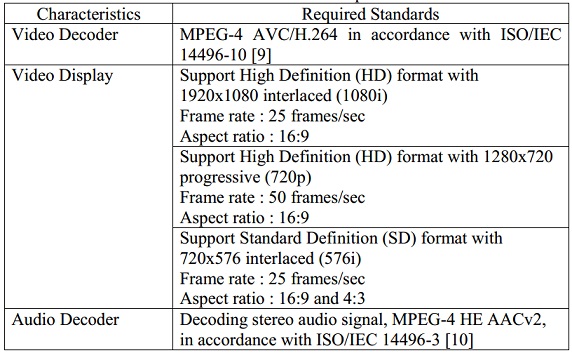 泰国国家广播和通信委员会NBTC (National Telecommunication Commission of Thailand)针对进入泰国市场的DVB-T2地面数字电视接收机制定的符合性标准。包括RF射频接收和解调性能(频率范围、信号带宽、噪声系数、接收灵敏度、频偏、操作模式),音频,视频,解复用、以及EPG(电子节目表单)、LCN(逻辑频道号)、AFD、字幕、语言等PSI/SI等功能性测试内容。