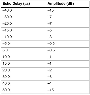 单条静态回波测试,信道模型为一条静态回波加一条主径,回波有13中不同配置。