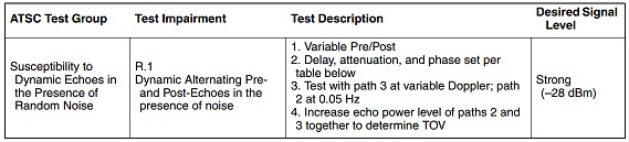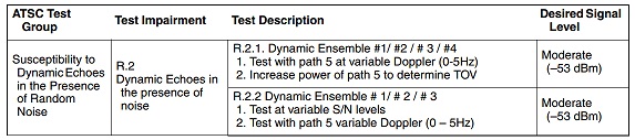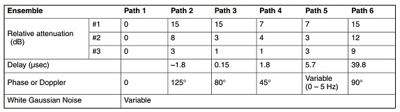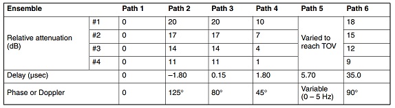 单条动态回波测试,信道模型为一条动态回波加一条主径,通过设置不同的回波延时、衰减、多普勒频移条件验证DUT是否能正常接收。